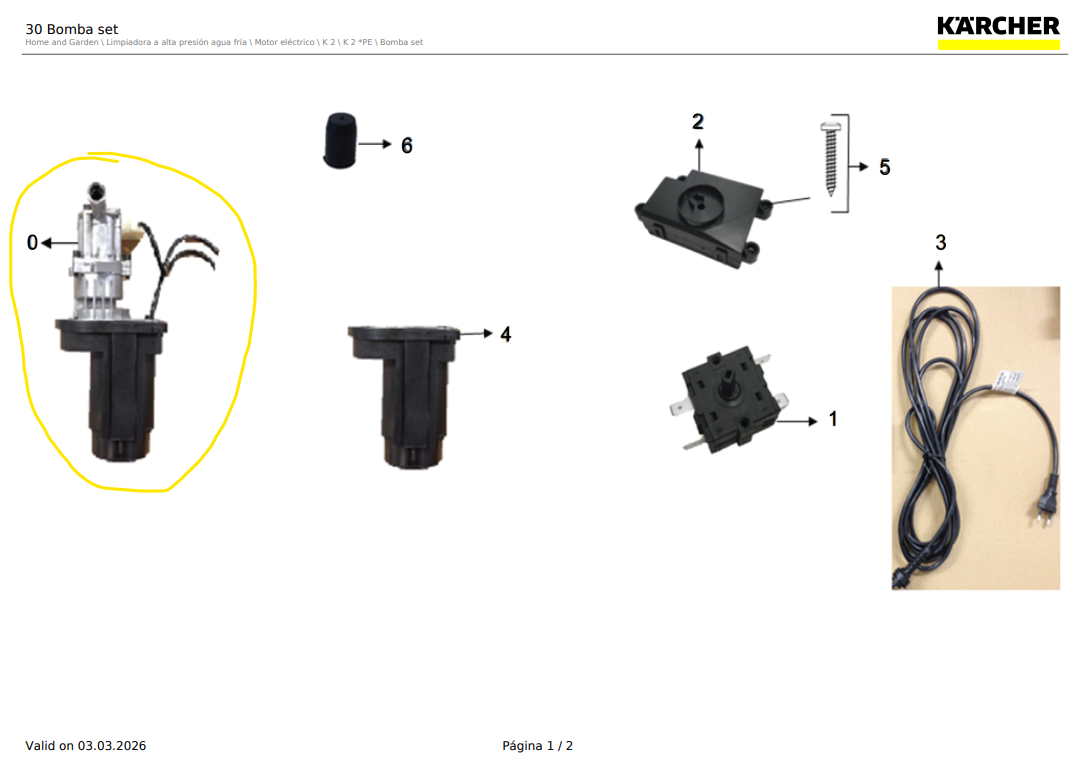 Conjunto bomba de agua y motor completo para hidrolavadora karcher K 2 versión (1.994-354.0) / 9.312-454.3