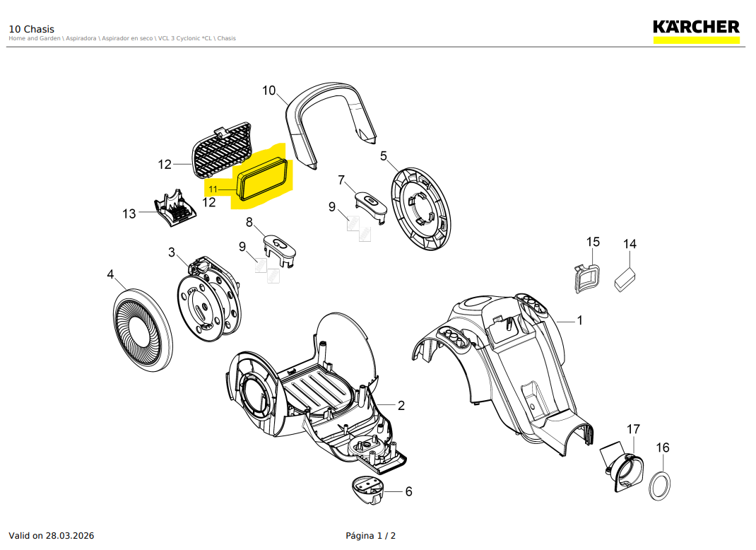 Filtro de aire de salida para aspiradora Karcher VCL 3 Cycloncic / 9.372-281.0
