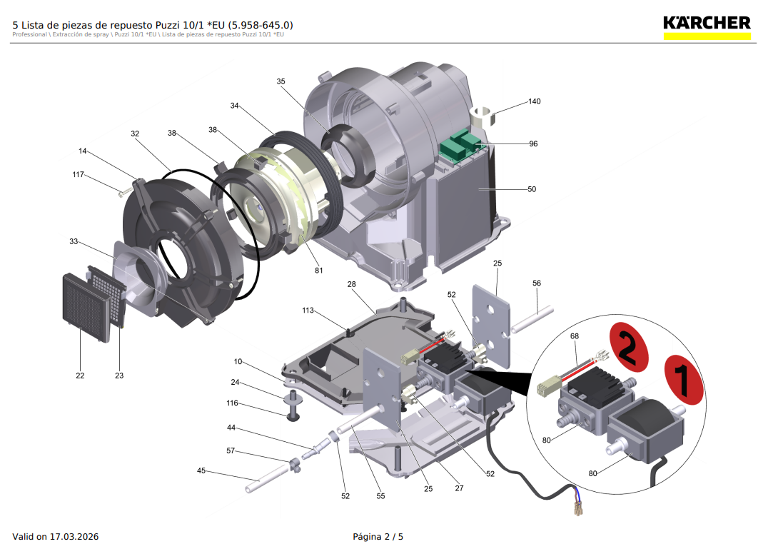 Mortor para limpia tapices karcher, Puzzi 10/1 / 4.605-180.0
