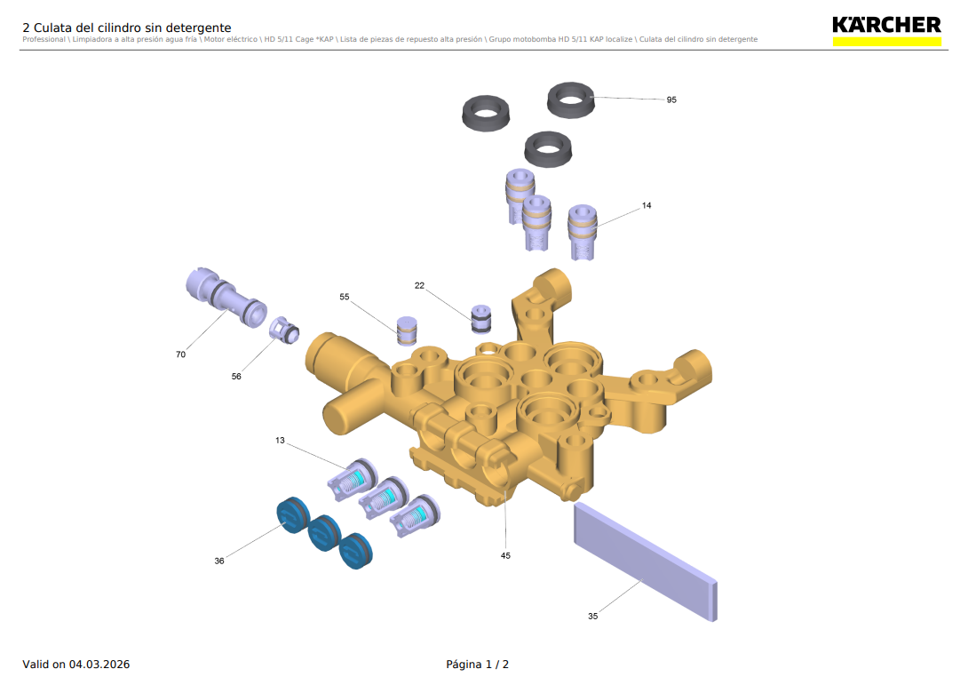 Válvula completa para hidrolavadora karcher HD 5/11 Cage / 9.751-171.0