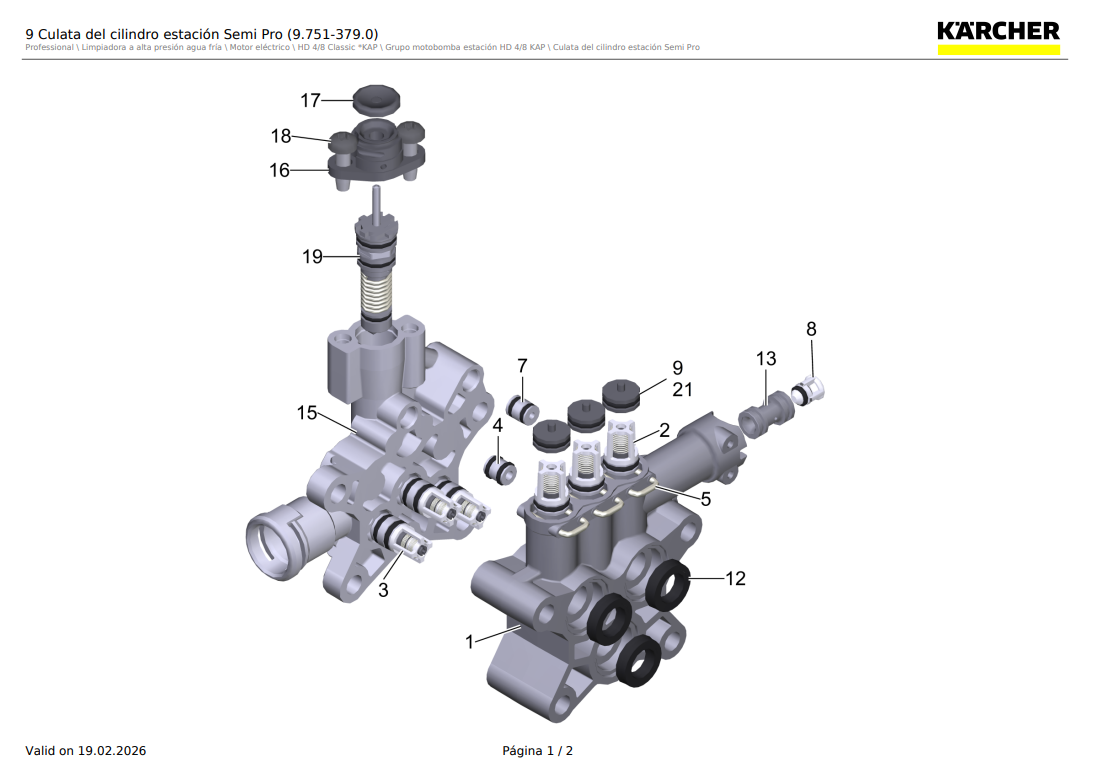Válvula de aspiración completa para hidrolavadora Karcher HD4/8, HD 5/11 Cage / 9.751-172.0